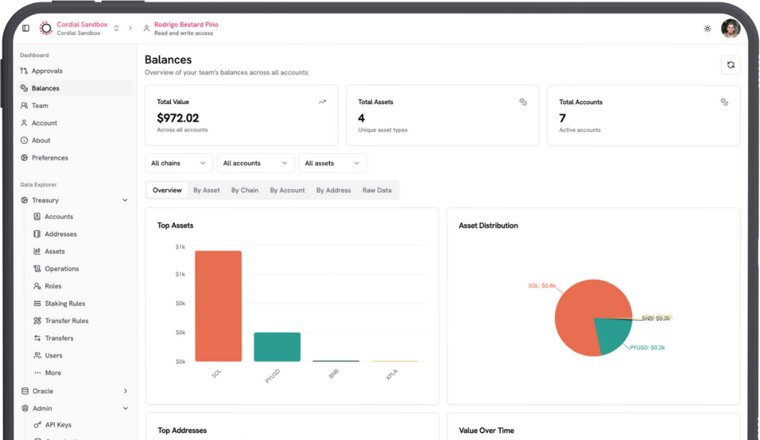 API key support for centralized exchanges is also built in, enabling capital rebalancing and unified visibility across custody and trading infrastructure.