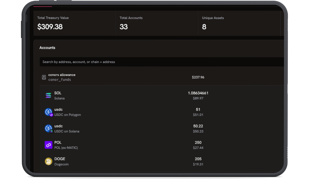 API key support for centralized exchanges is also built in, enabling capital rebalancing and unified visibility across custody and trading infrastructure.